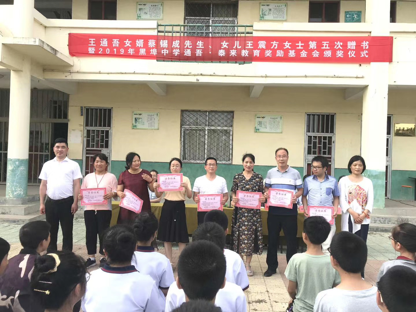 泰來(lái)包裝董事長(zhǎng)——王天佑為優(yōu)秀新沂市黑埠中學(xué)學(xué)子頒發(fā)榮譽(yù)證書